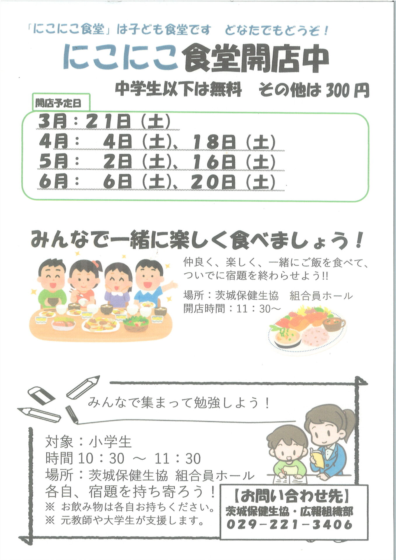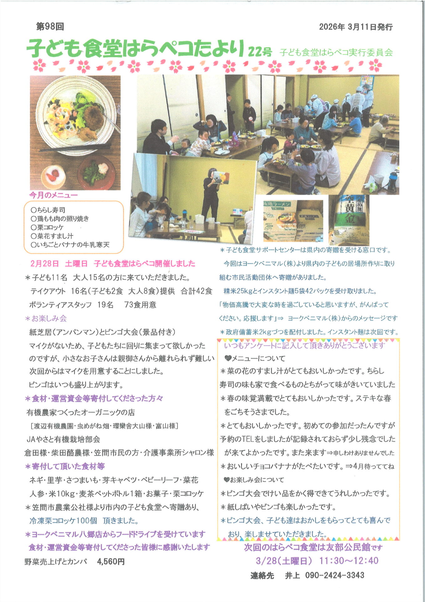 子ども食堂「にこにこ食堂水戸」の予定、はらぺこだより22号(3.11)です
